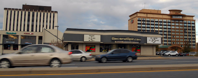 Driving North on Colorado Blvd. I just pointed and clicked the camera as I climbed the hill. Somehow, it focused on the building, with the traffic blurring perfectly, centered between the two taller buildings behind it. In low light even! This was an early morning after we'd just returned from Minnesota. Usually Second Spin was a place I tended to go to when Laura was on vacation in MN, without me. She wasn’t as big a fan of these places.
