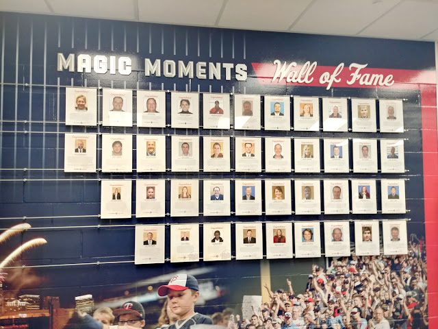 Directly in front of us was the Magic Moments Wall of Fame. From what I could tell, was a way for the Twins to recognize team employees who did something special. By placing their photos on a wall that not very many people will ever see.